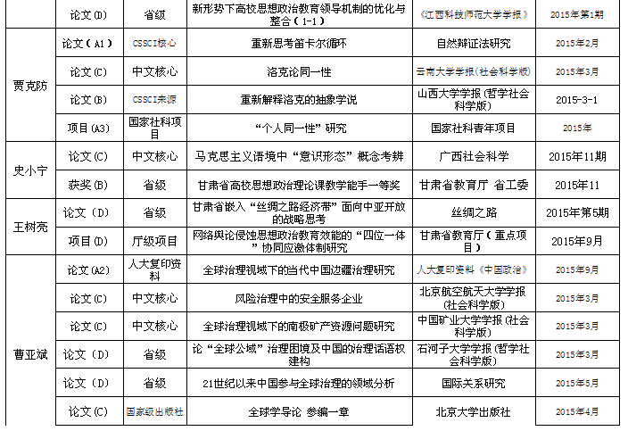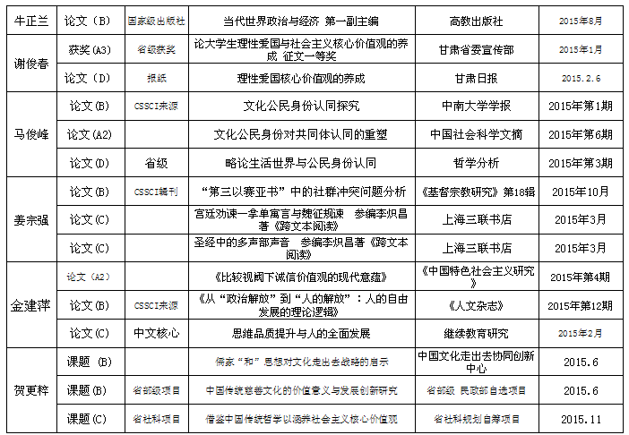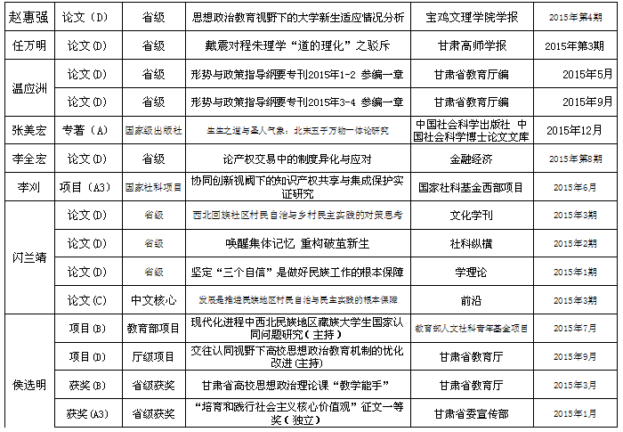 新葡萄8883官网AMG2015年教师科研成果汇总表