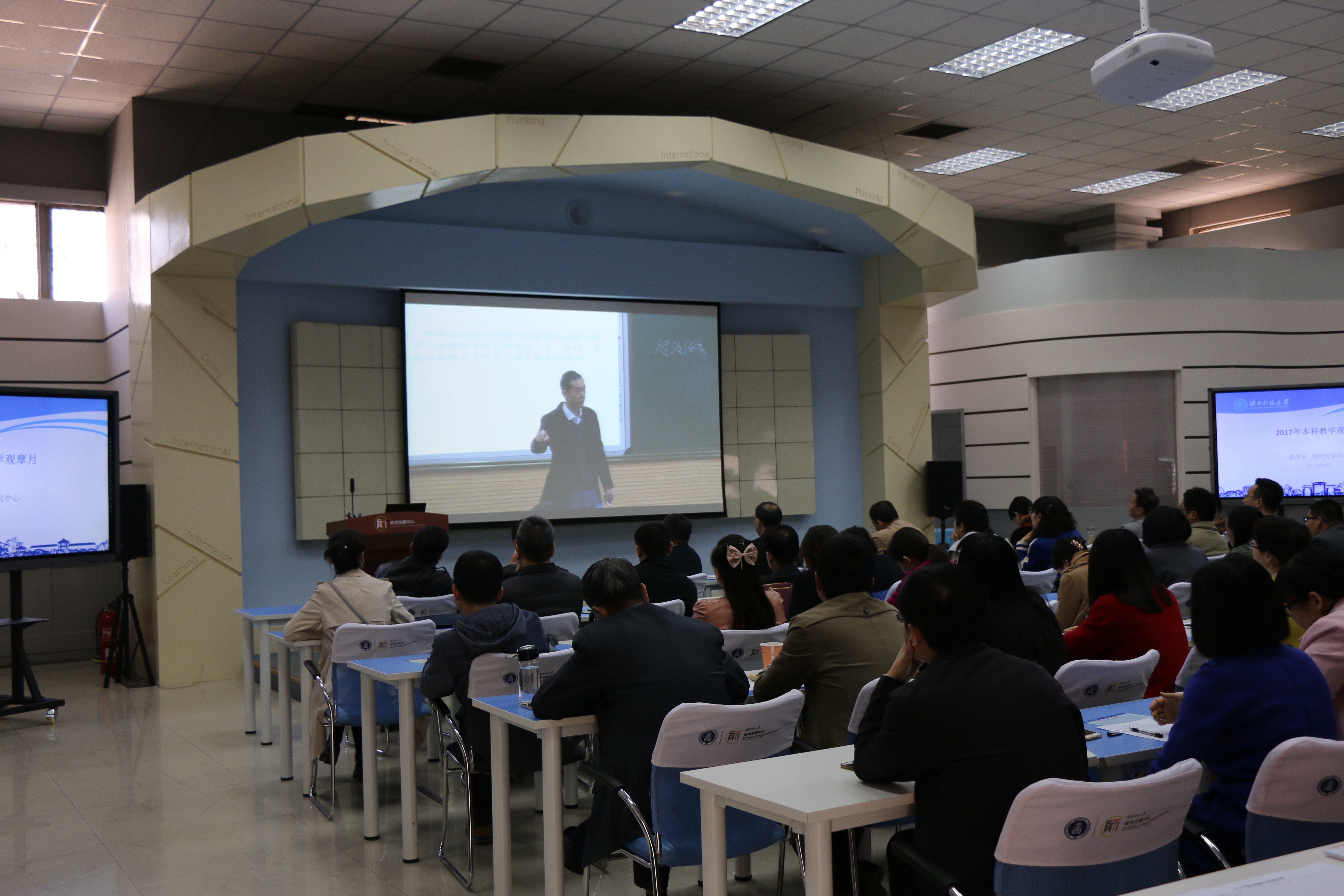 4月17日上午, 2017年新葡萄8883官网AMG教学观摩月活动第三场公开课暨新葡萄8883官网AMG专题教学研讨会在学校教师发展中心举行。全校各学院部分青年教师、新葡萄8883官网AMG师生共180多人观摩了胡好副教授讲授的《西方哲学史》公开课。教务处王兴副处长主持了公开课观摩活动。