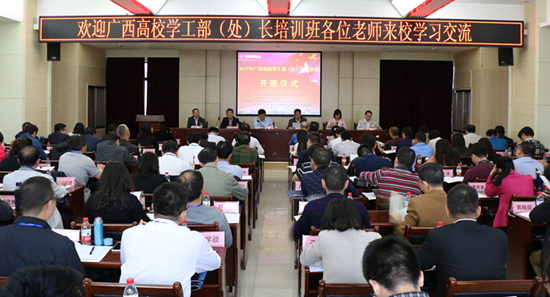 5月22日上午,2017年广西高校学工部(处)长培训班开班仪式在新葡萄8883官网AMG举行。广西高校工委副书记满昌学、宣传部部长李美清和新葡萄官网副校长、教育部新葡萄8883官网AMG辅导员培训和研修基地主任张生勇及甘肃省教育厅思政处处长牛辉峰、新葡萄8883官网AMG负责人出席开班仪式。来自广西74所高校以及我省部分高校学工部(处)长共110余人参加开班仪式。新葡萄8883官网AMG院长王宗礼教授主持开班仪式。