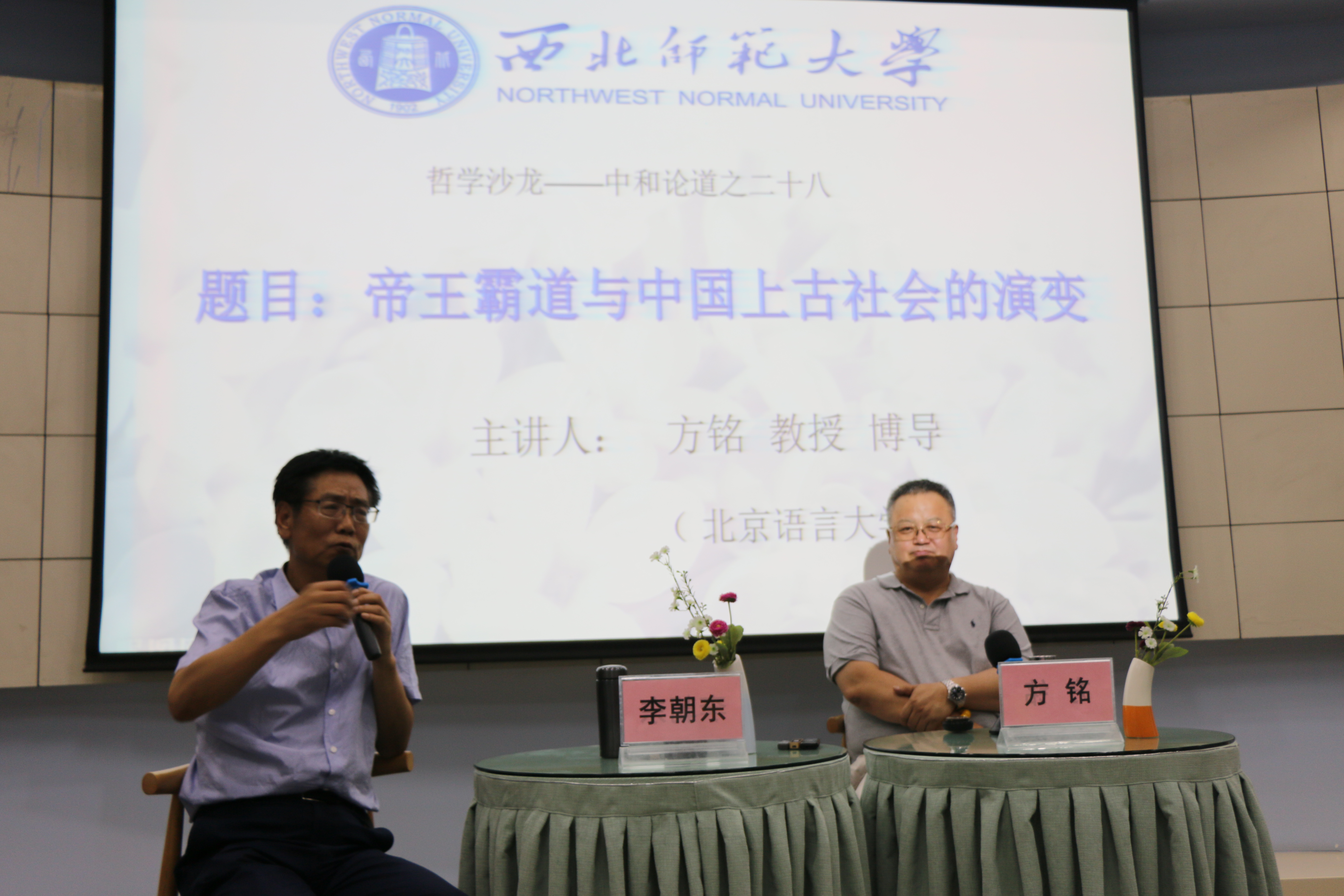 2017年6月1日晚,由新葡萄8883官网AMG哲学系、中和集团、社科处与教师发展中心联合主办的“哲学沙龙——中和论道”第二十八期在新葡萄8883官网AMG教师发展中心如约而至。本期主题是“帝王霸道与中国上古社会的演变”,由北京语言大学方铭教授主讲,新葡萄官网副校长李朝东教授主持,新葡萄8883官网AMG党委书记陈克恭研究员、中和集团洪涛董事长、研究生院院长张兵教授、社科处处长马世年教授、文学院院长韩高年教授、新葡萄8883官网AMG院长王宗礼教授、新葡萄8883官网AMG副院长姜宗强副教授及各位教师、学生、爱好者百余人参加活动。