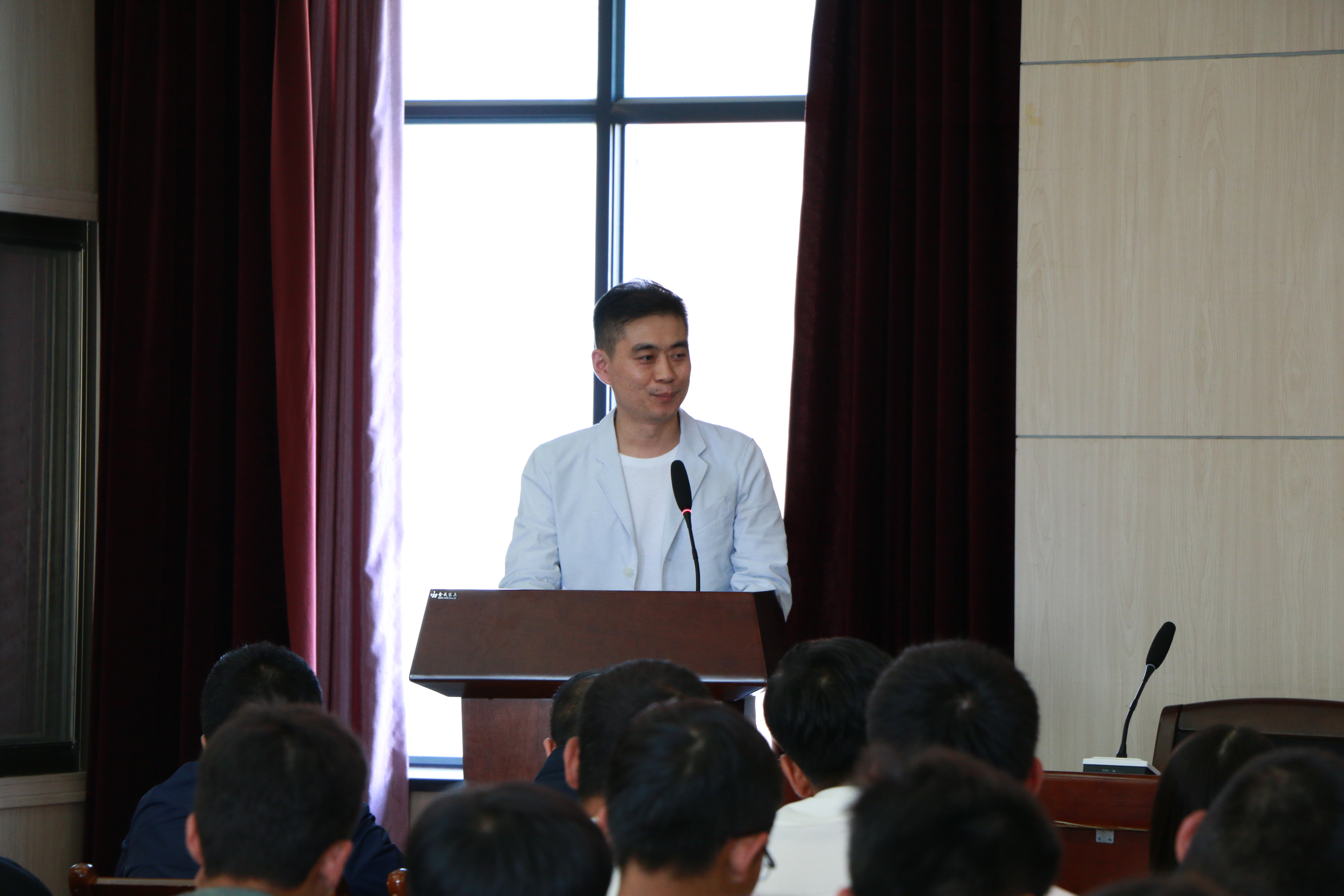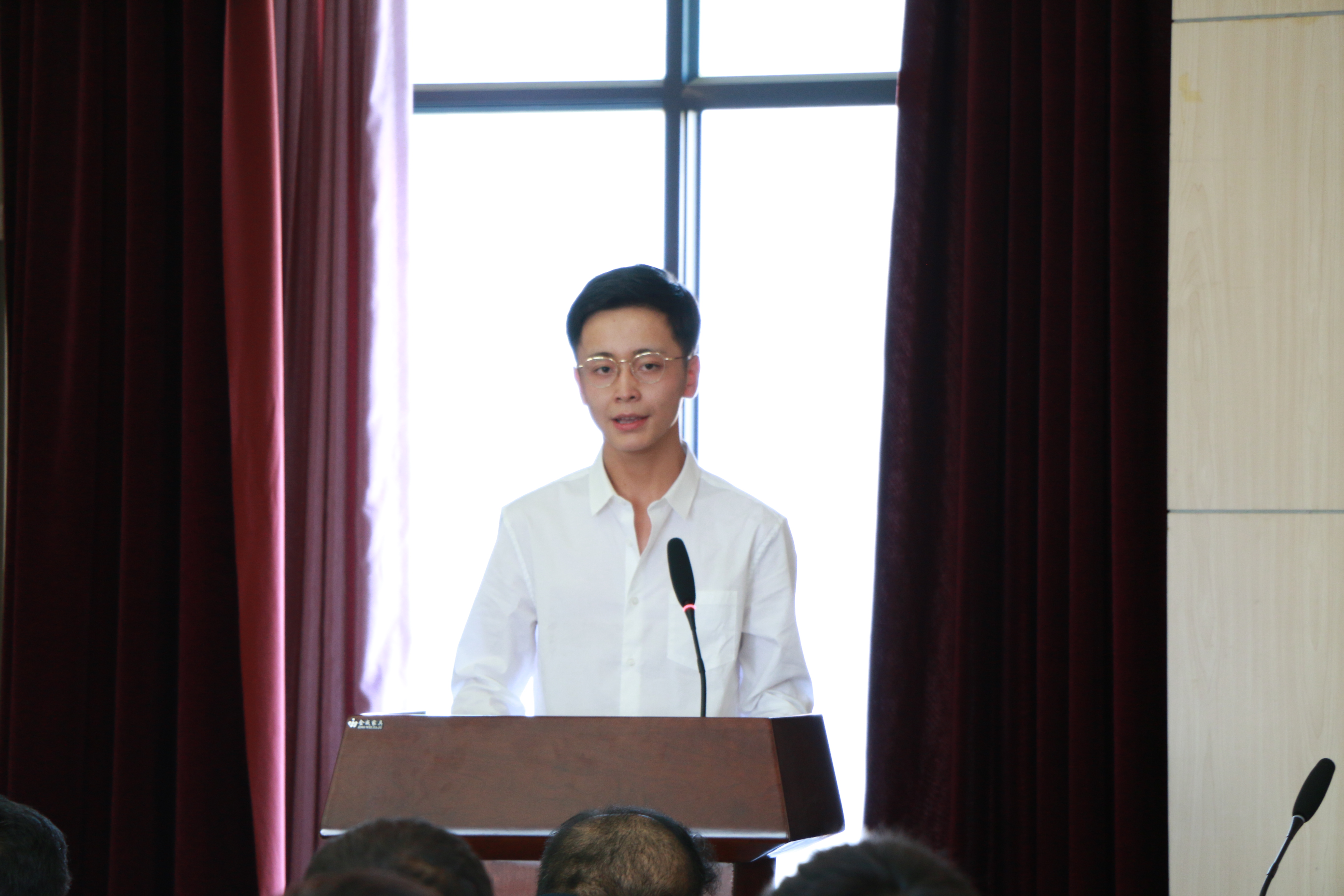 硕士研究生导师代表贾克防副教授从“快乐”和“成功”两个方面寄语新生:同学们一定要寻找到最真实、最有生命力的快乐,即求知和学习的快乐,并借用西方哲学家亚里士多德的著名言论“人就其本性而言是求知的”展开阐释;一味地追求成功并不可取,那样更容易导致失败,只有不断追求卓越,成功才会伴随而至。