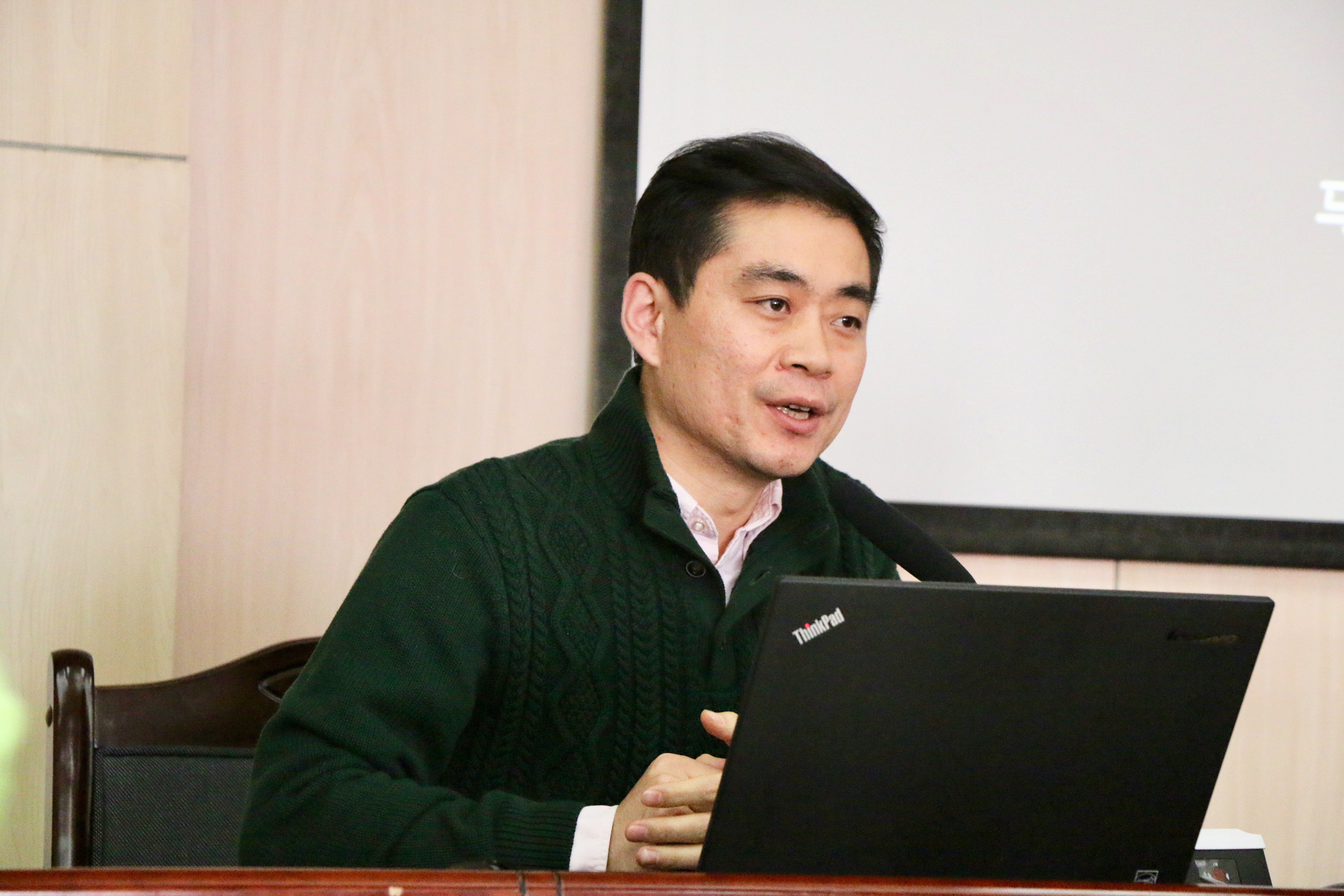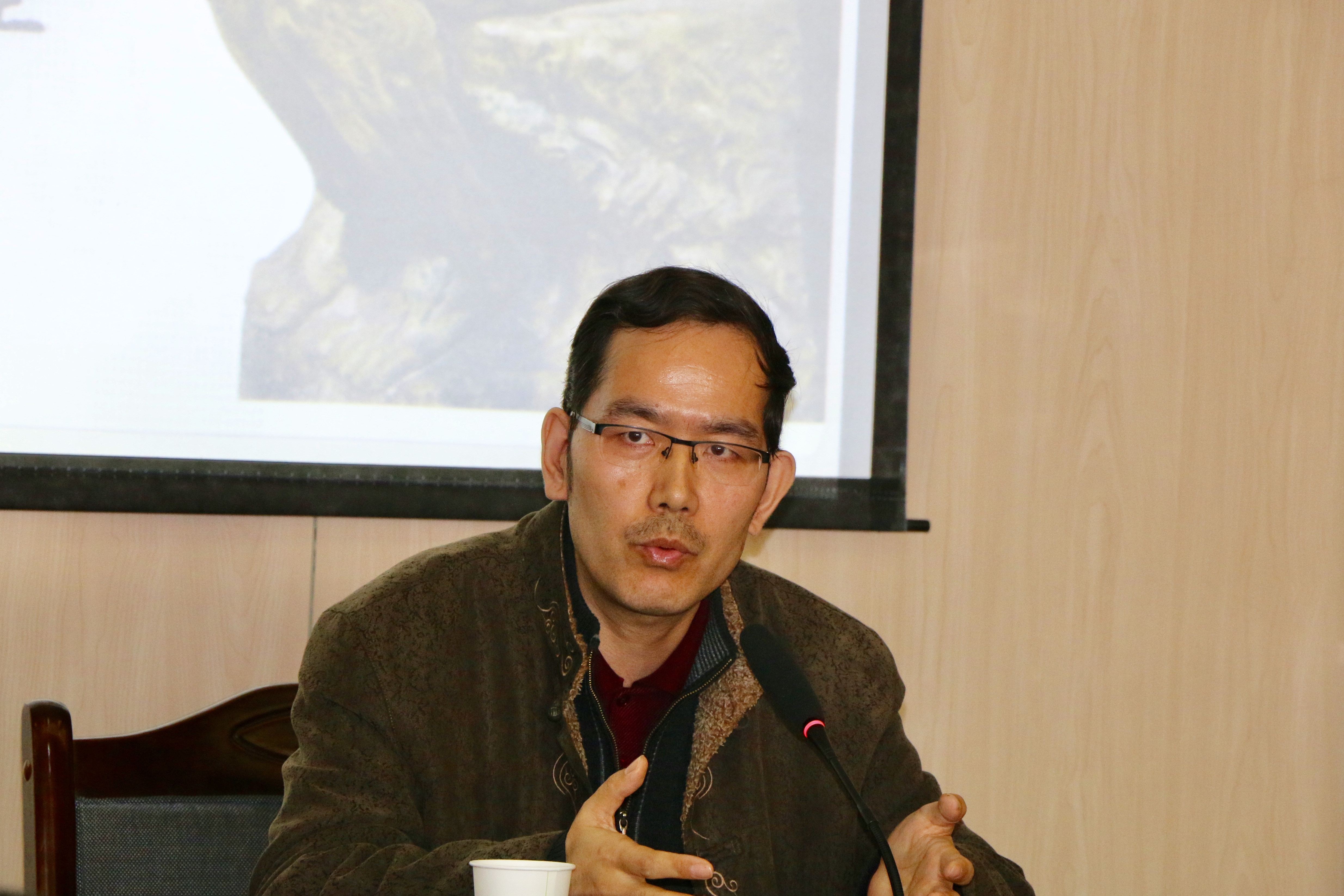 经过主持人任万明副教授和朱海斌博士的精彩点评后迎来了贺更粹副教授主讲的第二场报告,题目为“儒家的礼乐教化”,贺更粹老师开篇引用了《周易·系辞下》中“黄帝、尧、舜,垂衣裳而天下治,盖取诸乾坤”之句,然后从“礼乐是一个人文体系、教化是一个人文历程、礼乐教化是化成天下的人文活动”三个方面深刻的论证了儒家的礼乐教化,并进一步强调,礼乐教化不仅是儒家的基本哲学思想,更是中国人安身立命的根本。评议阶段,传媒学院杨光祖教授从礼乐和教化两个方面谈论了自己对贺更粹老师本场报告的感受和看法,同时给予了高度评价。最后,主持人任万明副教授评价到,贺老师的讲座结构清晰、文本融会贯通,同时也引发了我们思考更多的理论问题,总结精要之后,在大家的掌声之中结束了上午的报告。