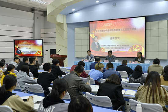 张俊宗指出,习近平新时代中国特色社会主义思想是马克思主义在中国大地上进行伟大社会主义实践过程中形成的最新成果,是马克思主义中国化的一个新境界新高峰,是我们党迈向新时代、开启新征程的根本理论指引和行动纲领,集中体现了全国人民的共同意志。学习好、研究好、阐释好、宣传好习近平新时代中国特色社会主义思想,是高校责无旁贷的重要任务。学校开设“习近平新时代中国特色社会主义思想大讲堂”,对大力推动对习近平新时代中国特色社会主义思想的学习、研究和宣传具有重要意义。他希望把宣传讲授的系统性和师生关注的重点、热点问题结合起来,把深入研究和宣传解读结合起来,把专题讲授和思想政治理论课教学结合起来,切实发挥好引领带动作用,使“习近平新时代中国特色社会主义思想大讲堂”成为广大师生最为喜爱、最具活力的学习平台。