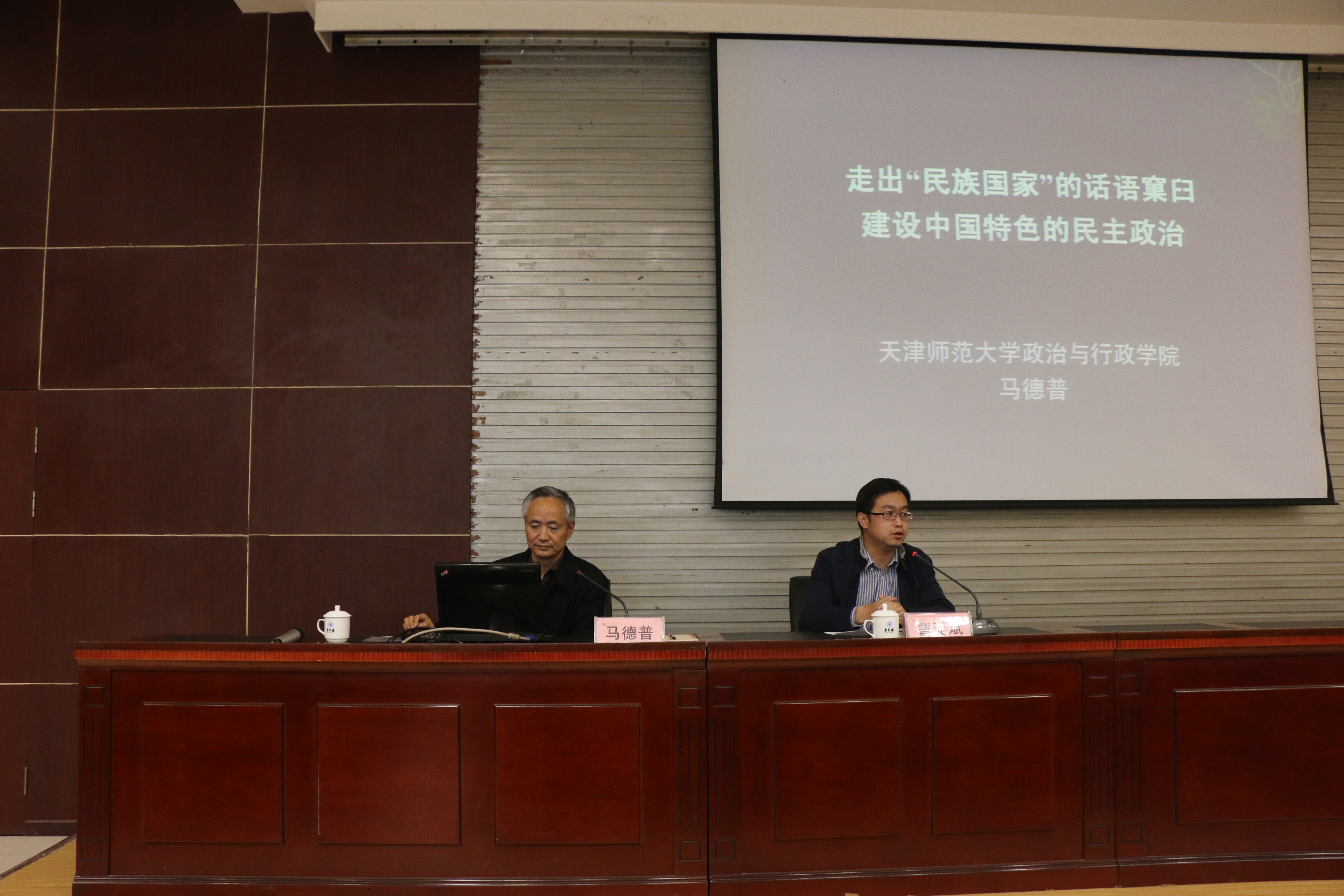 4月27日下午3点,“习近平新时代中国特色社会主义思想大讲堂”第二讲在新葡萄8883官网AMG专家楼报告厅举行。天津师范大学政治与行政学院马德普教授应邀作了题为《跳出“民族国家”的话语窠臼,建设中国特色的民主政治》的报告,报告会由新葡萄8883官网AMG曹亚斌副教授主持,新葡萄8883官网AMG本科生、研究生共100余人聆听了此次报告会。
