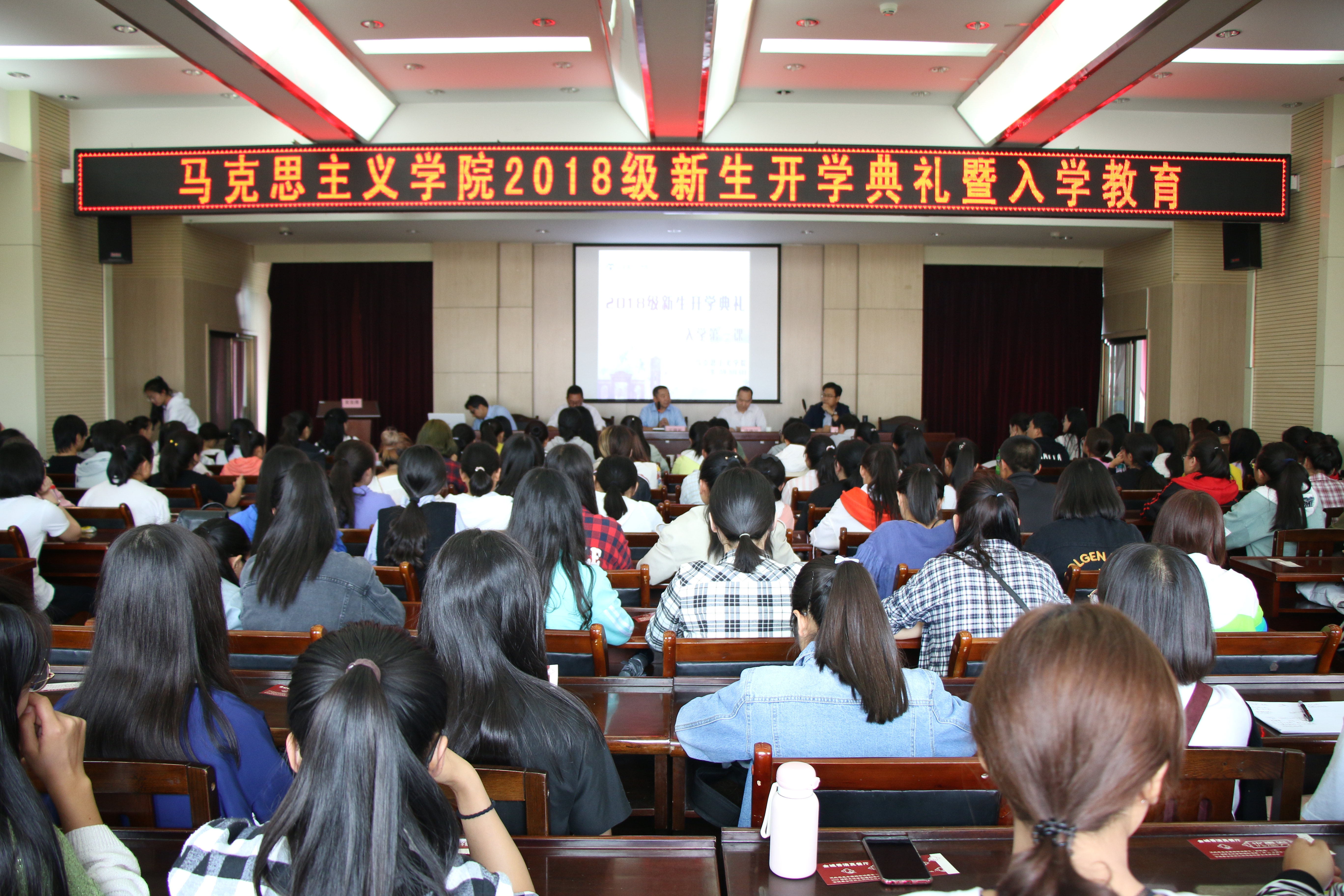2018年9月5日下午,新葡萄8883官网AMG2018级新生开学典礼在教学十号楼D区四楼多功能报告厅举行。学院班子成员、系(所、中心)主任、教师代表、辅导员和133名本科生、79名硕士研究生、14名博士研究生参加了开学典礼,开学典礼由学院党委副书记马科中主持。