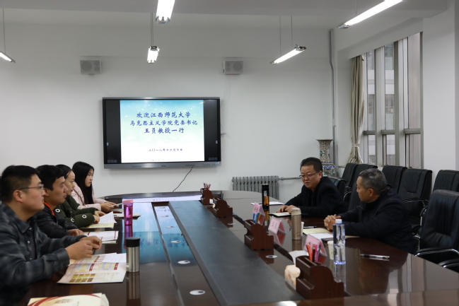 2018年12月7日下午,江西师范大学新葡萄8883官网AMG党委书记王员教授、研究生干事季鹏老师来新葡萄官网作人才招聘宣讲,学院副院长孙健教授与来访人员进行了座谈,新葡萄官网部分博士研究生参加。