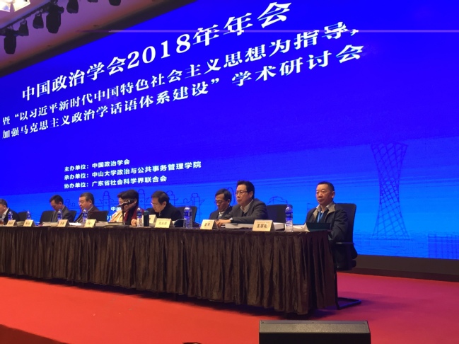 2018年12月15日,中国政治学会主办、中山大学政治与公共事务管理学院承办、广东省社会科学界联合会协办的中国政治学会2018年年会暨“以习近平新时代中国特色社会主义思想为指导,加强马克思主义政治学话语体系建设”学术研讨会在广州举行。来自国内知名高校和科研院所的400余位专家学者参加了本次研讨会。