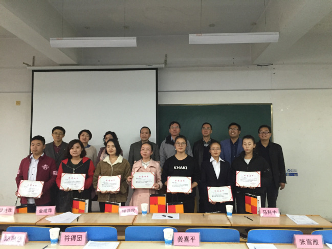 最终,汪婷同学获得一等奖,宋国瑛、李成俐同学获得二等奖,王丽丽、王雪萍、李怀黎、俞桃源同学获得三等奖。赛后,评委老师为每位选手和同学们提出了宝贵的意见和建议,并为以上获奖同学颁发了荣誉证书和奖品。本次活动不仅展示了学院师范生的教师素养,也为2018届本科师范生教育实习画上一个圆满的句号。