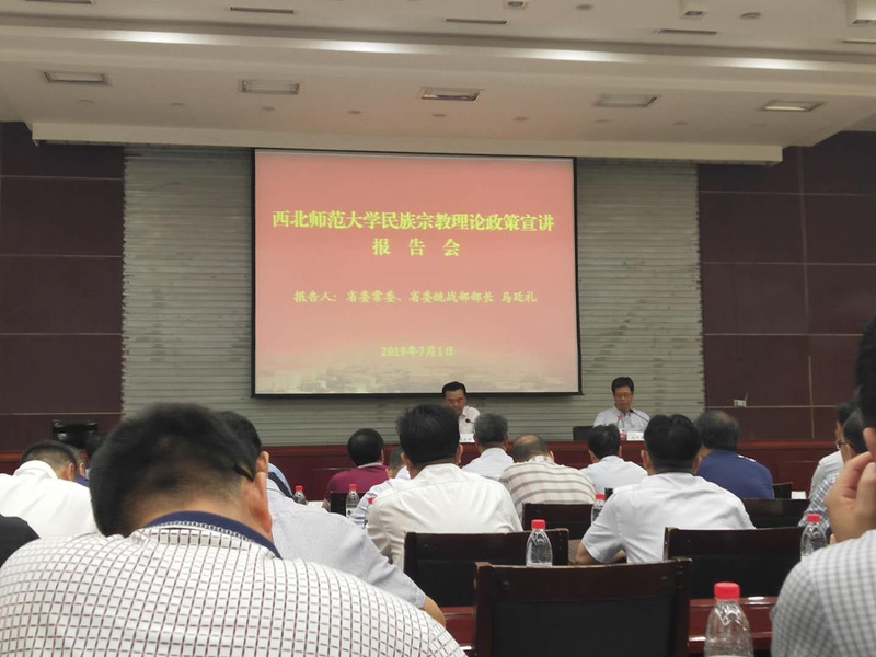 2019年7月1日,为庆祝中国共产党建党98周年,新葡萄8883官网AMG学生第二党支部全体党员在专家楼报告厅参加了由校党委组织的专题报告会,听取了甘肃省省委常委、省委统战部马廷礼部长作的《民族宗教理论宣讲》专题报告。