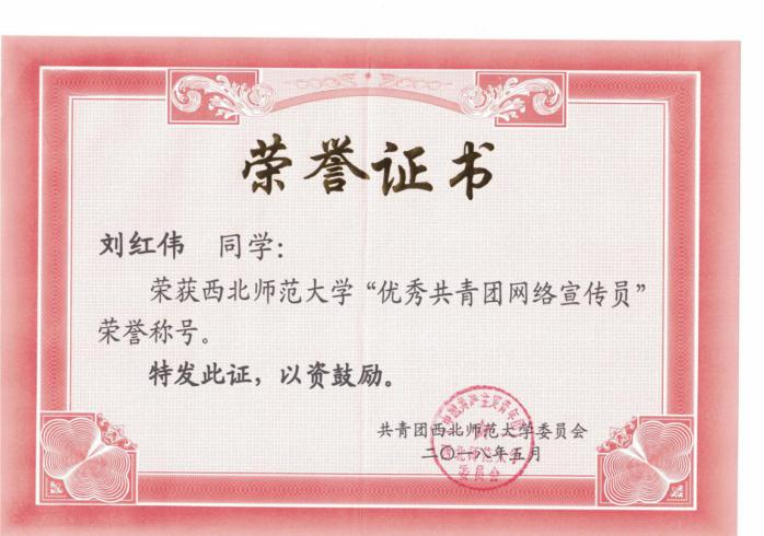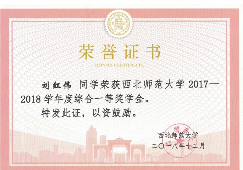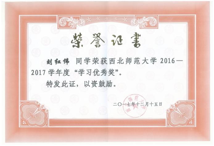 大三下学期结束,刘红伟以3.98的三年学业总绩点,39.5的综测分数均位居专业第一。从大一到大三,他的学业成绩一直处于不断上升的趋势,大一学年学业成绩专业第三、大二学年学业成绩专业第三,大三上学期学业成绩专业第一,大三下学期学业成绩专业第一,前六学期学业成绩和综合测评成绩均位于专业第一。在大二结束之后,面对当时不太乐观的学业成绩,他也存在着彷徨与焦虑,思考着以后的路该向何处去,该如何走的问题。从那之后,他选择了一条“认真”的道路,他每次上课都非常认真听讲,同时每天也开始了在图书馆的学习,他说:“面对当时的学习状况,压力比较大,每天早上6:20起床,赶7:00图书馆开门时必须到达,大三一年可以说都是在图书馆度过的,并且为了争取更多的学习时间,很多时候中午就在图书馆稍微休息之后就继续学习。”每当他面对复杂的学习任务坚持不下去的时候,总会自己对自己说“成长实苦,但请你拥有绝对的自信”,也许,正是他一次次的自我激励,才使他一直坚持了下来。