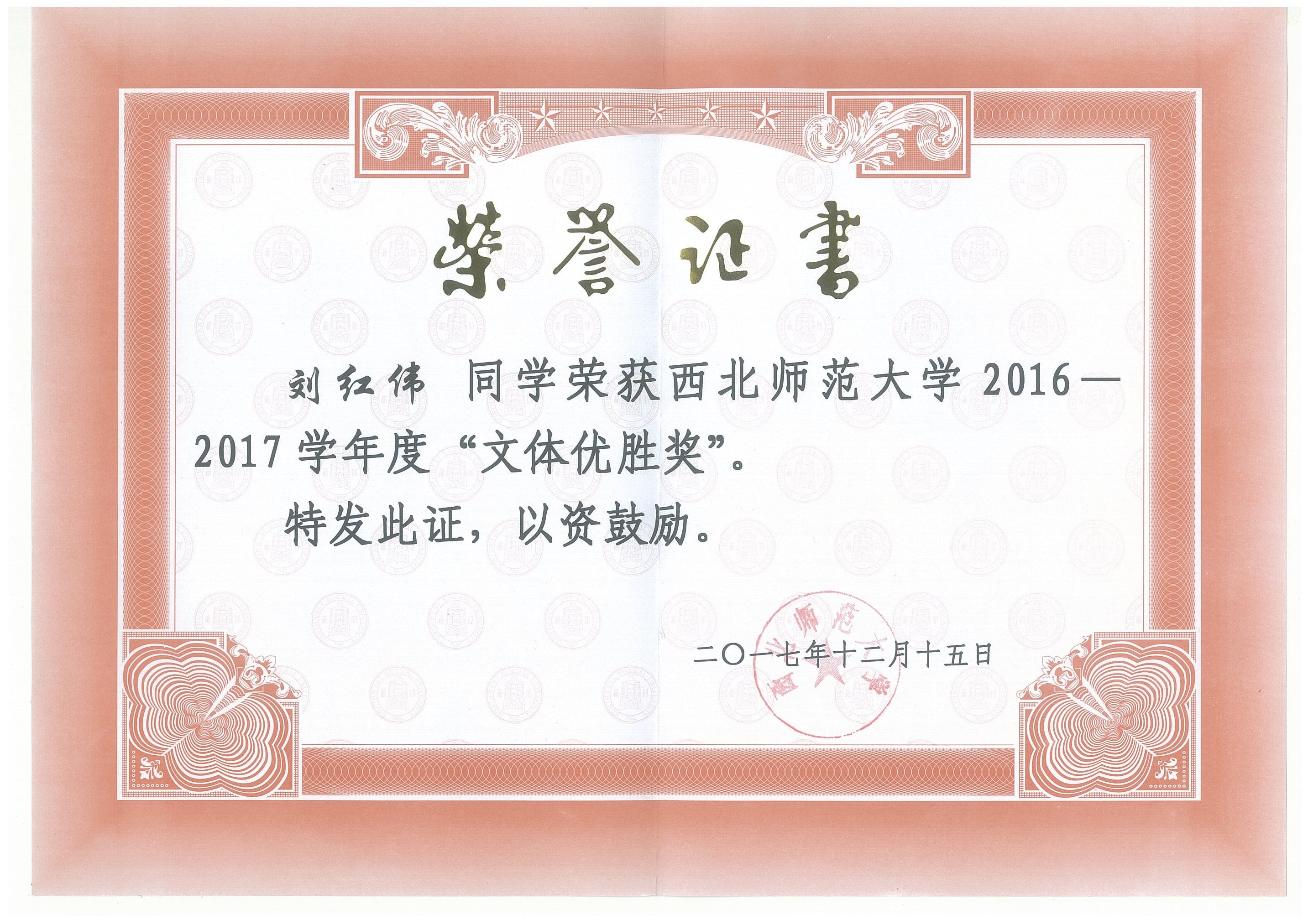 注:以上两篇论文均由他担纲作为第一作者执笔,且都荣膺校级优秀论文奖项。
