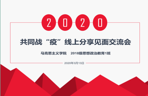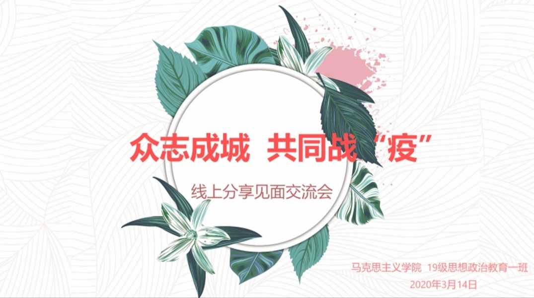 已亥年,庚子春,荆楚大疫。突如其来的疫情牵动着我们每个人的心,中华民族团结一心抗击疫情,全国人民筑起了一座抗击新冠病毒的钢铁长城。这场疫情把学校的教学活动推向了线上,2020年3月14日、15日新葡萄8883官网AMG以班级为单位分批召开线上交流会。学院党委副书记马科中、团委书记郭琦、辅导员县旭帆、董韵涵、肖娜以及各班的班主任老师参与了此次交流会。