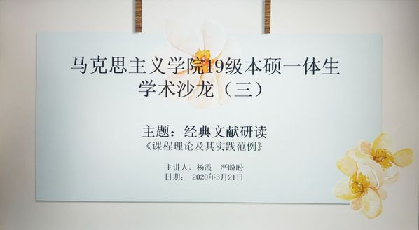 2020年3月21日上午9:00,2019级本硕一体生通过腾讯会议的形式组织了本学期第三期学术沙龙活动。活动主题是:经典文献研读——《课程理论及其实践范例》,活动由杨霞和严盼盼两位同学主讲,18级吴文房同学也参加了本期活动。