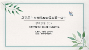 新葡萄8883官网AMG2019级本硕一体生本着“停课不停学,停课不停研”的原则,在2020年4月19日早上如期开展了第七期学术沙龙。本期学术沙龙围绕经典文献《教学模式》的第五部分和学科教学论文的写作进行研讨。此次活动由2019级本硕一体生杨霞和张涛涛两位同学主持。