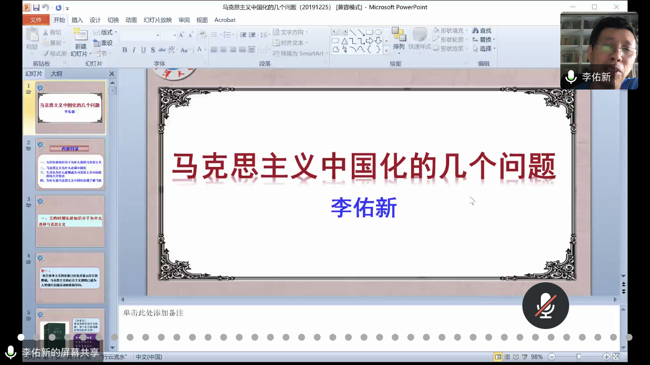 应新葡萄8883官网AMG邀请湘潭大学李佑新教授在线作了题为《马克思主义中国化的几个问题》学术报告报告由新葡萄8883官网AMG马俊峰教授主持,学院教师、本硕博学生共计200余人在线收听了报告。