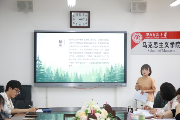 学院10位2018级本硕一体生分别围绕《巧用寓言故事讲好哲学课的教学设计与实施——以高中政治<生活与哲学>部分内容为例》、《请摘掉课堂“伪生成”的面具——以初中道德与法治课教学片段为例》等进行了精彩的教学案例展示。