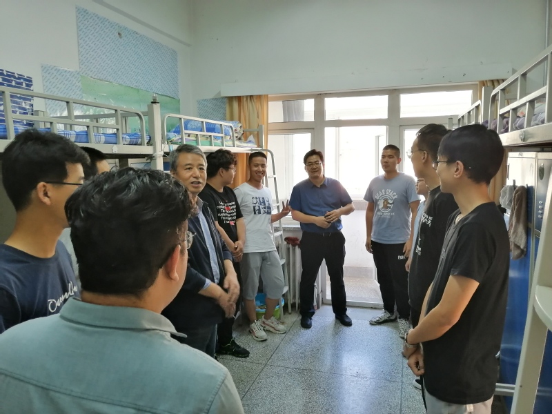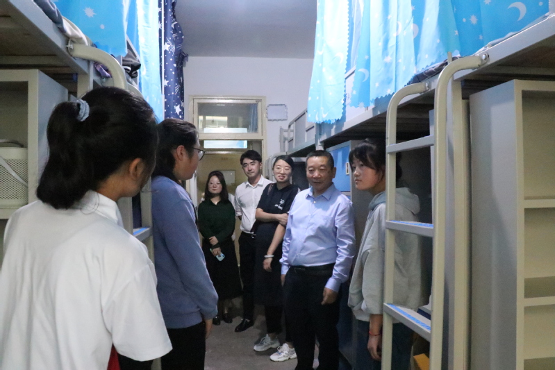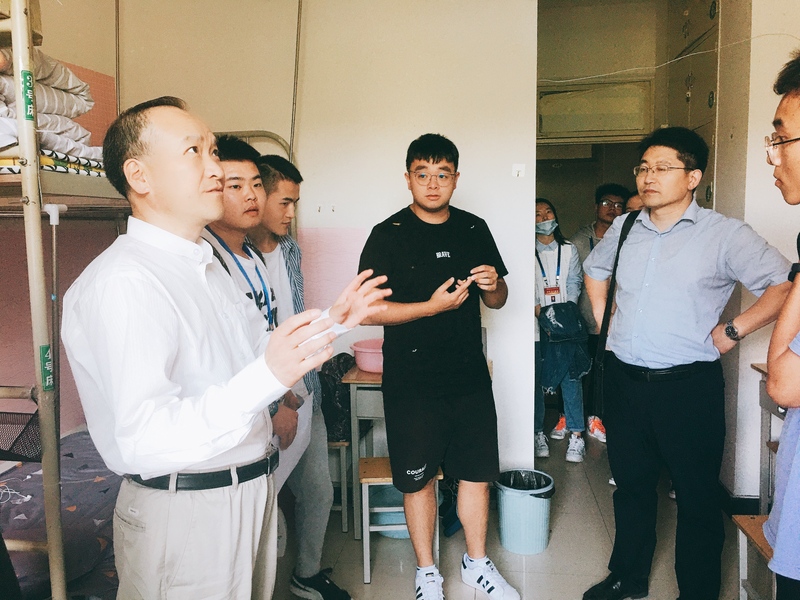 符得团书记走进宿舍与新生进行亲切交流,细心查看了学生宿舍的基础设施及安全保障情况,勉励大家要坚定理想信念,培养乐观向上的人生态度,刻苦努力,多思多学,以饱满的热情投入到新学期的学习生活中。