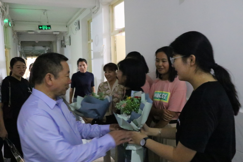 走访中新生也向学院领导及老师献上鲜花,2020级新生殷吉涛同学说:“我们一定会努力学好专业知识,做好我们的“事业”,努力提升自我文化修养,提升自我价值,不负学校与老师的期望。”
