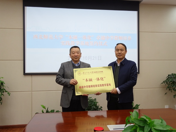 实践教学基地的建立,标志着“本硕一体化”卓越中学教师培养项目的实施又上新台阶,为大学和中学联合培养卓越中学教师开创了新局面。随后,学院将继续推进在兰州一中、兰化一中、甘肃省临夏县中学以及中学思政课名师工作室等建立实践教学基地。