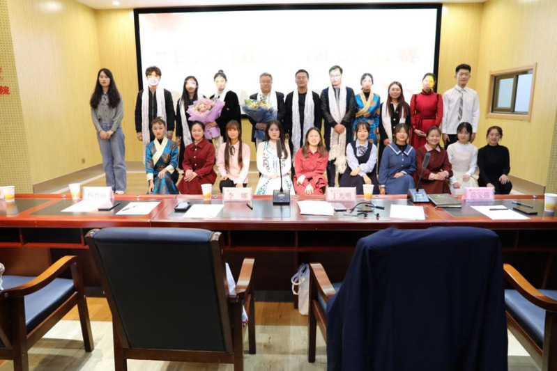 最后,评委老师为获奖选手颁发奖状,学生代表为评委老师献上鲜花与哈达并合影留念。