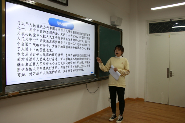 学院22位硕士研究生汇报了自己的学术成果,包括马克思主义理论2019级18名硕士生,2020级2名硕士生,政治学理论2019级2名硕士生。22位同学以PPT形式作了“马克思关于人的解放重要性的理论阐述”“从新冠疫情期间中美外交摩擦分析中国话语权的提升路径”“基于可视化视角研究习近平的思想政治教育思想”“以中华优秀传统文化筑文化自信之基石”等主题的报告。