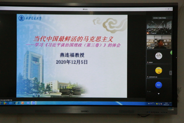 12月5日下午,应学院邀请,西安交通大学新葡萄8883官网AMG燕连福教授在线作了题为“《习近平谈治国理政(第三卷)》解读”的报告。报告会由新葡萄8883官网AMG副院长马俊峰教授主持,学院教师、本硕博学生聆听了报告。本场报告也是研究生学术月活动之一。