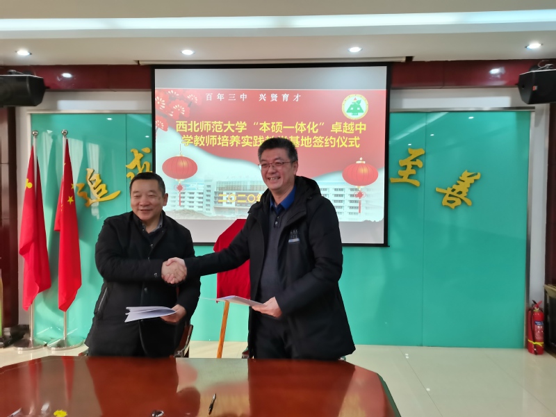 本学期,学院已和兰州新区舟曲中学、兰州新区高级中学、兰化一中、兰州一中、兰州三中、甘肃省景耀勇思政课名师工作室、甘肃省王勤治思政课名师工作室签订挂牌了“本硕一体化”卓越中学教师教学实践基地。随后,将继续推进在兰化三中、甘肃省刘永兰思政课名师工作室等建立实践教学基地。