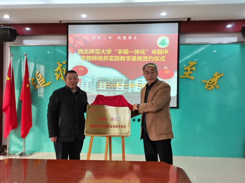 为进一步推进“本硕一体化”卓越中学教师培养项目的实施,拓展本硕一体生教学实践基地的规模,2020年12月16日、17日,新葡萄8883官网AMG牵头分别到兰州一中、兰州三中举行了新葡萄8883官网AMG“本硕一体化”卓越中学教师培养实践教学基地签约挂牌仪式。