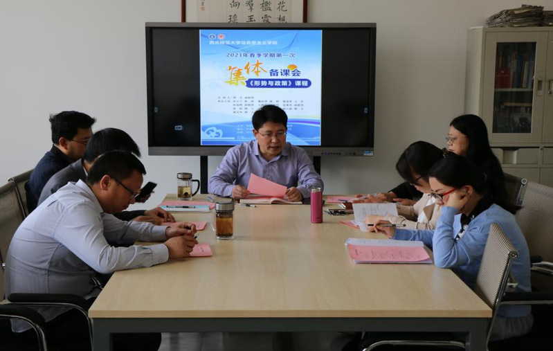 为深入贯彻落实习近平总书记在全国教育大会和学校思想政治理论课教师座谈会上的重要讲话精神,坚持“以本为本”,不断推进思政课程质量提升,新葡萄8883官网AMG形势与政策研究所召开了2021年春季学期第一次《形势与政策》课程集体备课会议。新葡萄8883官网AMG副院长史小宁、魏彩萍教授、侯选明副教授、袁维杰副教授、漆凋兰博士、张钰博士、翟玉华博士参加会议,会议由形势与政策研究所所长周方副教授主持。