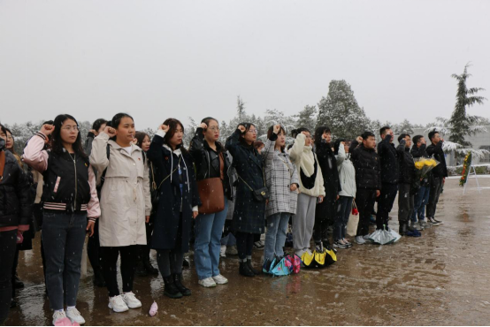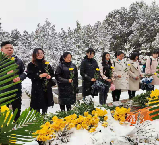在庄严肃穆的革命烈士纪念碑下,全体人员集体肃立,奏唱《中华人民共和国国歌》,默哀一分钟,并向革命英烈敬献花篮、重温入党誓词、表达了对革命英烈的深切缅怀之情。