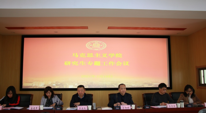 副院长金建萍传达了全国研究生教育会议的精神,汇报了2020年研究生工作的举措和成绩,从加强研究生教学管理制度建设,完善研究生过程培养,积极推进科研育人、理论育人和实践育人等方面进行了详细解读。张莉老师讲解了教学管理中课程设置、读书会、论文检测送审方面的细节。2020年校级优秀导师曹亚斌教授对读书会的专业性、长期性提出了建设性意见。2019级硕士生钟科丞代表全体研究生表达了对学院课堂、讲座、阅读、导师“四位一体”培养方式的认可。