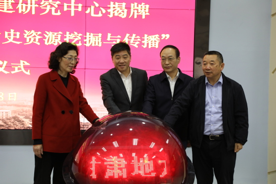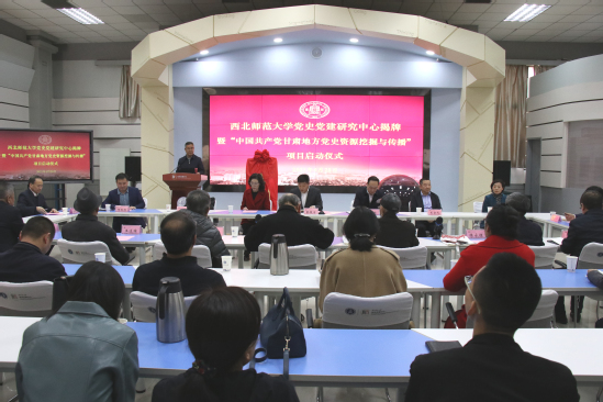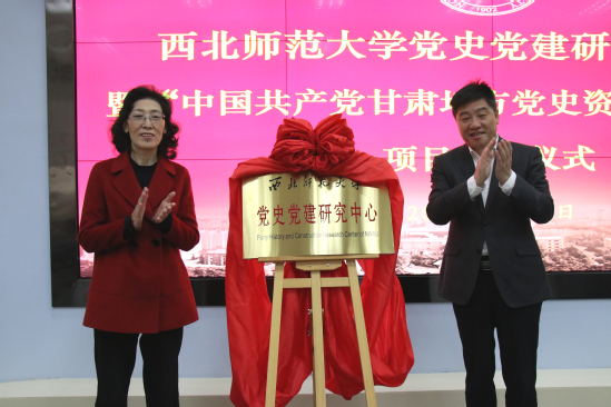揭牌仪式上,西北师大党委组织部负责人宣读了研究中心成立文件,西北师大党委书记张俊宗与省委党史研究室巡视员孙瑛共同为“新葡萄8883官网AMG党史党建研究中心”揭牌,张俊宗、孙瑛、巩炜和西北师大新葡萄8883官网AMG院长王宗礼教授共同启动“中国共产党甘肃历史研究与宣传”项目,巩炜、张俊宗分别致辞。