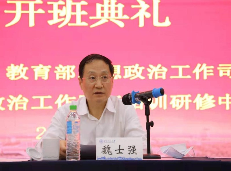 魏士强在讲话中表示,在全党上下深入开展党史学习教育,喜迎中国共产党成立100周年之际,我们举办全国高校统战部部长培训班,是为总结工作、分析形势,全面加强以习近平新时代中国特色社会主义思想为指导,进一步提升高校统战工作质量,推动高校统战工作在新时代创造新作为。各高校要结合年度重点工作,进一步提升思想认识,加强政治引领、强化责任担当、厚植爱国情怀,着力破解重点难点问题,推动统战工作开创新局面。培训学员要聚焦主题,深研细悟,严格按照课程安排,在提高政治站位上下功夫,带着责任、带着问题学,联系实际、融会贯通学,切实提高思想理论水平,增强为党育人、为国育才的政治自觉、思想自觉和行动自觉;要在拓展工作视野上下功夫,充分利用小组讨论、课后交流等机会,围绕各项重点任务加强研讨、深入思考、深化认识;要在提高实际本领上下功夫,把自己摆进去、把职责摆进去、把工作摆进去,努力使学习成果转化为思想动力和发展举措,真正做到学而信、学而用、学而行,以优异成绩迎接建党100周年。