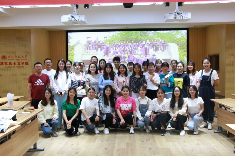 随后,马俊峰、王宏渊、张莉、毛娅楠四名老师为毕业生党员送上寄语,指出在学业中要明确目标,提前规划;在就业中要准备充分,主动尝试;在生活中要肯定自我、看到不足。活动最后,老师们为毕业生党员赠送纪念品,嘱托同志们心怀马院,以马院为家,在新征程中不忘初心,牢记使命,继续前行!