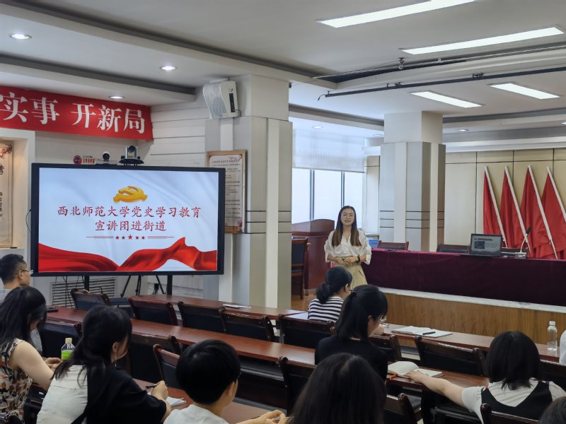 6月25日下午,新葡萄8883官网AMG新时代大学生理论宣讲团的5位成员走进了安宁区孔家崖街道办事处的会议室,通过声情并茂、通俗易懂的方式,运用事实数据、典型案例和生动活泼的语言,把百年党史中的精彩片段、动人故事和伟大精神等讲给了来自社区一线的基层工作者,用实际行动喜迎建党百年。