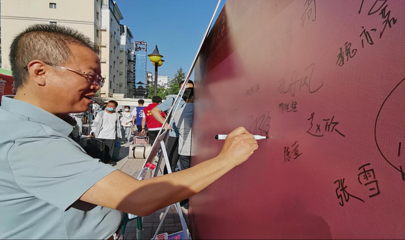 新生报到期间,学院领导先后莅临迎新现场,询问报到情况,与学生进行亲切交谈并在学院迎新签字墙上签字留念。学院领导、导师和班主任走访本科生、研究生新生宿舍,看望新同学、寄语新同学,希望同学们尽快融入马院大家庭。。