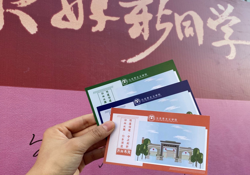 新生到达报到点填报个人信息后,在志愿者的引导下进入核酸检测环节,随后回到报到点领取学院专门为他们准备好的精心制作的明信片和精美的信封。学院专设了签名墙与梦想信箱,将新葡萄官网满满的信念感传达给每一位志同道合的新人们,用笔尖记录下每一个理想,用心灵承载真挚的马院之魂,让生活以真切的存在注满仪式感!