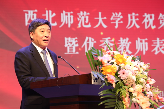 张俊宗在致辞中代表学校向受到表彰的优秀教师们表示热烈的祝贺!向无私奉献在教学科研、管理服务岗位上的全体教职员工致以节日的问候! 向多年来为学校建设和改革发展做出重要贡献的光荣退休老师和从教满30年的教师们致以崇高的敬意和衷心的感谢!