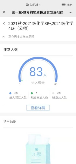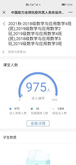 图1.线上教学到课率的实时统计