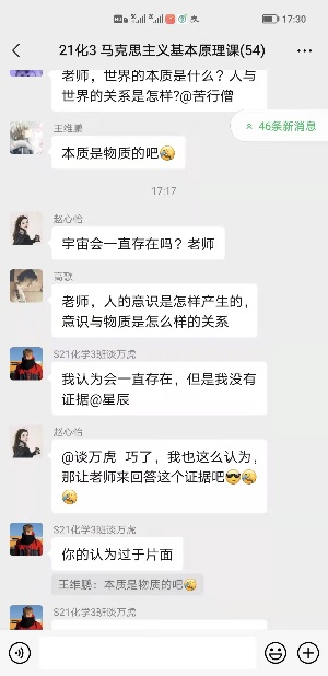学生喜好不代表教学效果,形成客观、全面的考核体系。在线上线下相结合教学过程中,张江波老师注重教师角色的转换,突出学生主体,由灌输转向对话,采用微信群+QQ群互动的方式线上互动、线下交流,实现教学相长的目的。