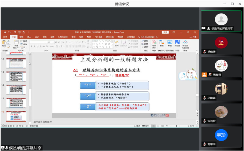 为帮助2022届本科毕业生认真备考,提高考研“上岸率”,自2021年11月5日起,学院连续开展4期“考研特训营”系列活动。侯选明副教授、董伟伟副教授、郝相赟老师通过线上教学方式对50余名考生进行了一一辅导。
