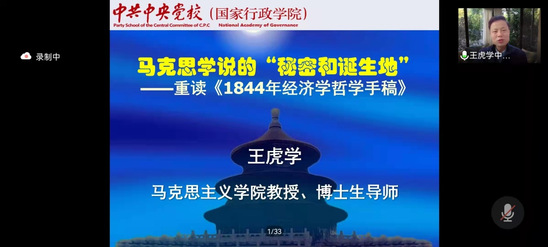 11月8日上午,应新葡萄8883官网AMG邀请,中共中央党校新葡萄8883官网AMG王虎学教授线上为新葡萄官网师生作了题为《马克思学说的“秘密和诞生地”——重读〈1844年经济学哲学手稿〉》的学术讲座。此次线上讲座由新葡萄8883官网AMG副院长马俊峰教授主持,学院全体师生共同参加了本次讲座。