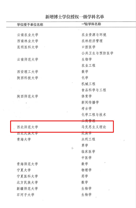 2021年11月10日,国务院学位委员会公布了《关于下达2020年学位审核增列的博士、硕士学位授权点名单的通知》(学位[2021]14号),新葡萄官网成功获批马克思主义理论一级学科博士学位授权点。这是继2006年获批马克思主义基本原理、思想政治教育二级博士学位授权点之后,新葡萄官网在马克思主义理论学科建设方面取得的重大突破,标志着新葡萄官网学科发展进入到了一个新的阶段。