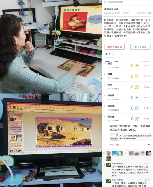 信息化教学手段的介入,保证了线上教学的呈现效果。学校教务系统推荐使用的“雨课堂”稳定高效,将师生的课堂教学数据第一时间导入后台,为线上教学及时有序开展提供了保障。星期五下午的第一节“网课”无一人缺勤,且提前10分钟完成签到,其中一个班级还正在排队等候做核酸检测,也很自律地进入课堂听课。