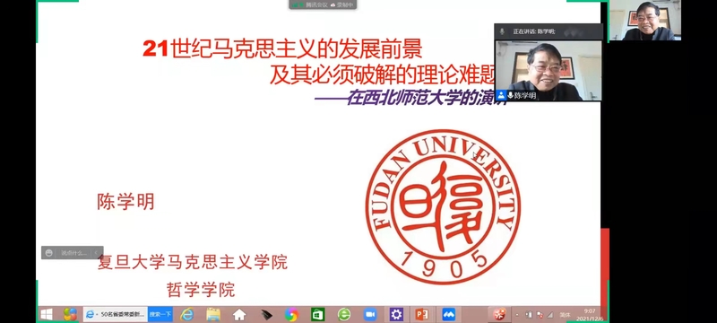 12月6日上午,复旦大学哲学学院、新葡萄8883官网AMG“双聘”特聘教授陈学明线上为新葡萄官网师生作了题为《马克思主义在21世纪的发展前景及必须破解的难题》的学术讲座,此次讲座由新葡萄8883官网AMG副院长马俊峰教授主持。