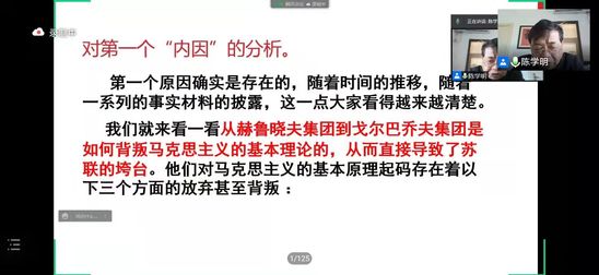 讲座结束后,陈学明教授线上与参会师生互动交流并就其提出的相关问题进行了深刻细致的解答。