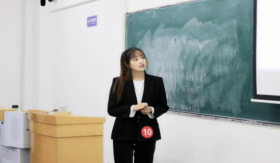 院级复赛由实习话感想、教学设计、模拟授课三个环节构成,总分100分,其中实习话感想10分,教学设计20分,模拟授课(包含多媒体课件制作20分、授课表现40分、板书10分)70分。11名入围院级复赛的同学紧密结合专业理论特色,运用不同形式展现课堂教授的实景,课程内容详实,教学设计合理,语言表达生动流畅,多媒体运用恰到好处,充分展现新葡萄官网师范生优秀的综合素养。