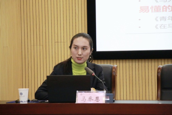 马乔恩老师作了“历史视野融入马原理学习的路径探究”的报告。马老师详细讲解了通过亲近个体的历史、回到思想的历史、观察时代的历史和开启实践的创新这四条路径学习马克思主义基本原理的方法。亲近个体的历史主要是通过人物写真、生平梳理、足迹追寻、情景再现等方式认识马克思既是一个有血有肉的凡人,也是一个顶天立地的伟人。回到思想的历史要人类思想史的视角、马克思主义发展史的视角以及理论运演的视角理解马克思主义,特别要重视马克思主义经典文本在这一过程中的重要作用。观察时代的历史则是自觉运用马克思主义的立场、观点、方法分析时代给出的命题。最后,马老师分享了关于如何开启理论创新、实践创新的几点思考。