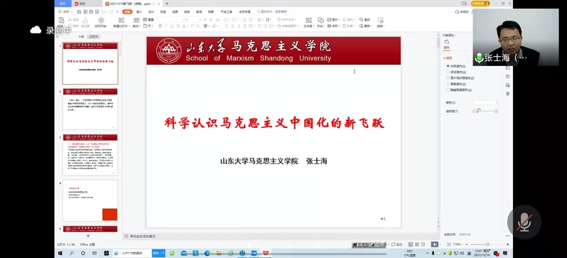 12月16日下午,山东大学新葡萄8883官网AMG院长张士海教授线上为新葡萄官网师生作了题为《科学认识马克思主义中国化新飞跃的三重逻辑》的学术讲座。本次线上讲座由新葡萄8883官网AMG副院长马俊峰教授主持,学院老师以及硕士博士生参加了报告会。