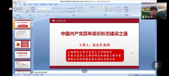 12月27日上午,上海师范大学新葡萄8883官网AMG张志丹教授线上为新葡萄官网师生作了题为《党的百年意识形态创新之道》的学术讲座,此次讲座由新葡萄8883官网AMG青年教师马乔恩主持。